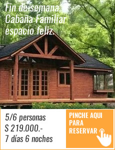 Espacio Cabaña Familiar para 4-5 personas, ,55 mts2 / 400 terreno, cama matrimonial, futón, cama doble,TV cable, Tinaja aguas calientes, , terraza con pérgola y sillas madera, baño con ducha, agua potable, energía solar y eléctrica. Luz LED, estacionamiento compartido en recinto.