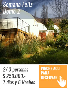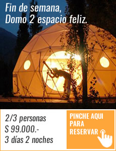Espacio DOMO2 para 4 personas, cama matrimonial, futón, cama doble,TV cable, Tinaja aguas calientes, , terraza con pérgola y sillas madera, baño con ducha, agua potable, energía solar y eléctrica. Luz LED, estacionamiento compartido en recinto.
